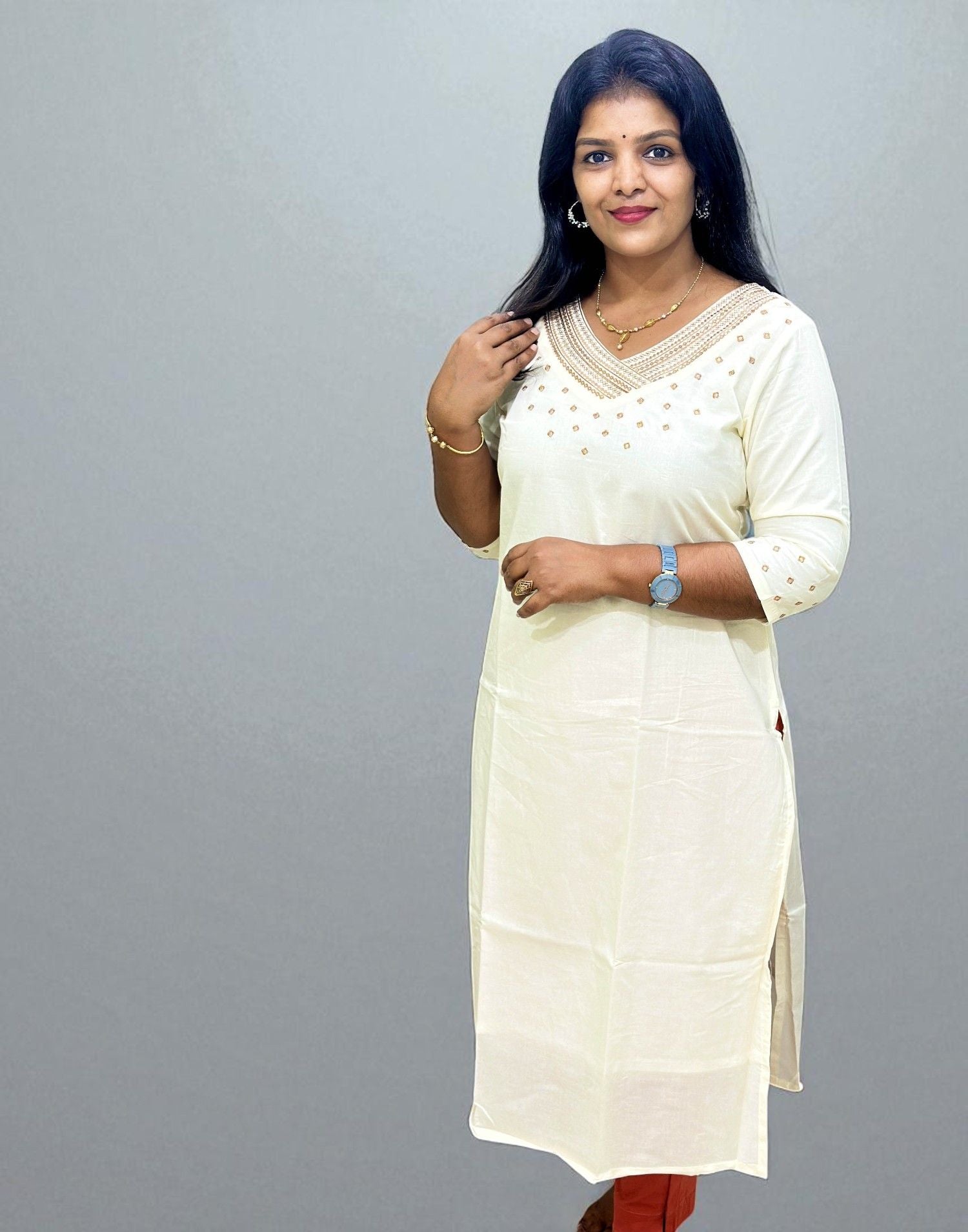 010825 (E6265) ONAM SPECIAL KURTI - Cream Gold