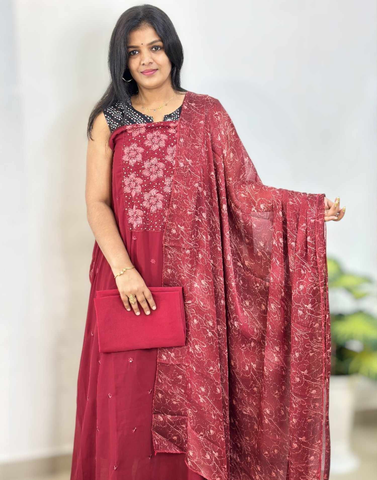 090925ML (E6481) UN-STITCHED SETS - Burgandy Maroon