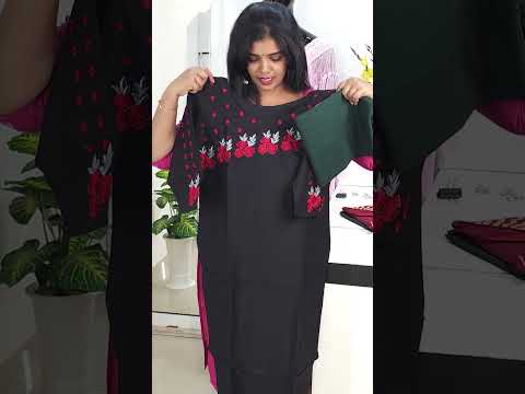 111125EK (E6616-E6617) DESIGNER EMBROIDERY KURTI - Black