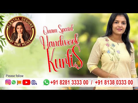 120825HK (E6340) ONAM SPECIAL HANDWORKED KURTI - Cream V Neck