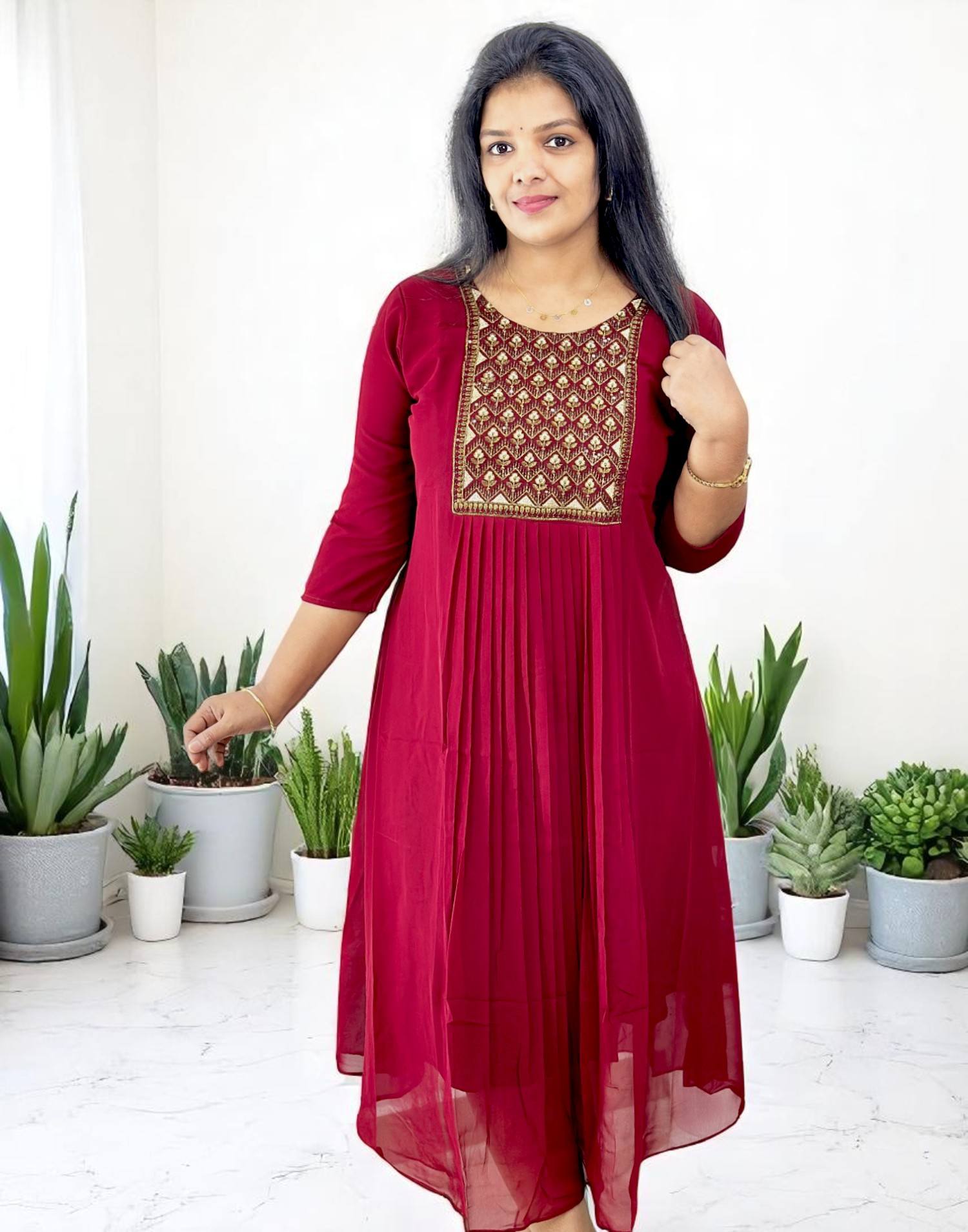130625EK (E6198) GEORGETTE A-LINE KURTI - Maroon