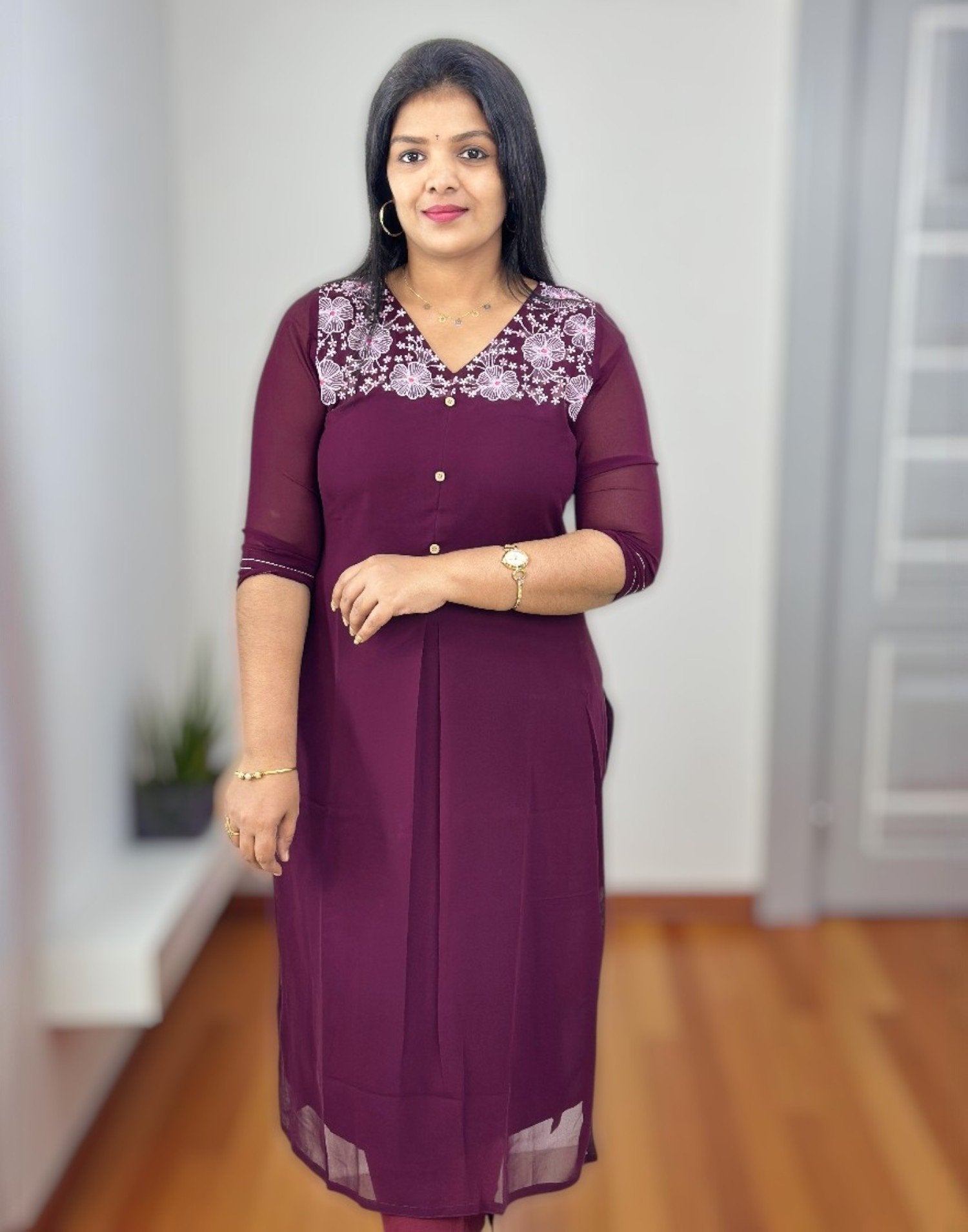 130925EK - GEORGETTE EMBROIDERY KURTI - Purple