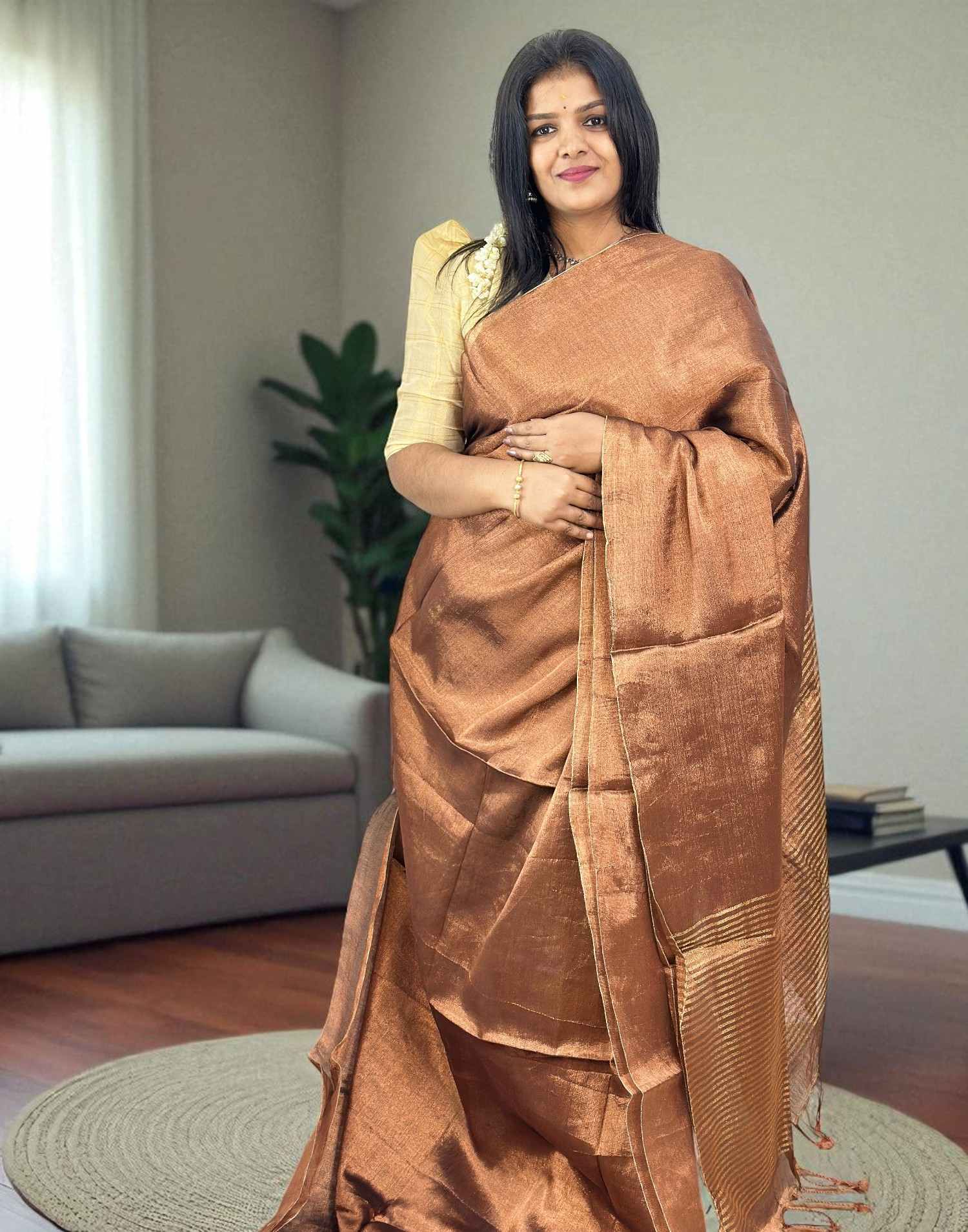 170825S (E6351) LINAN TISSUE SAREE - Antique Copper