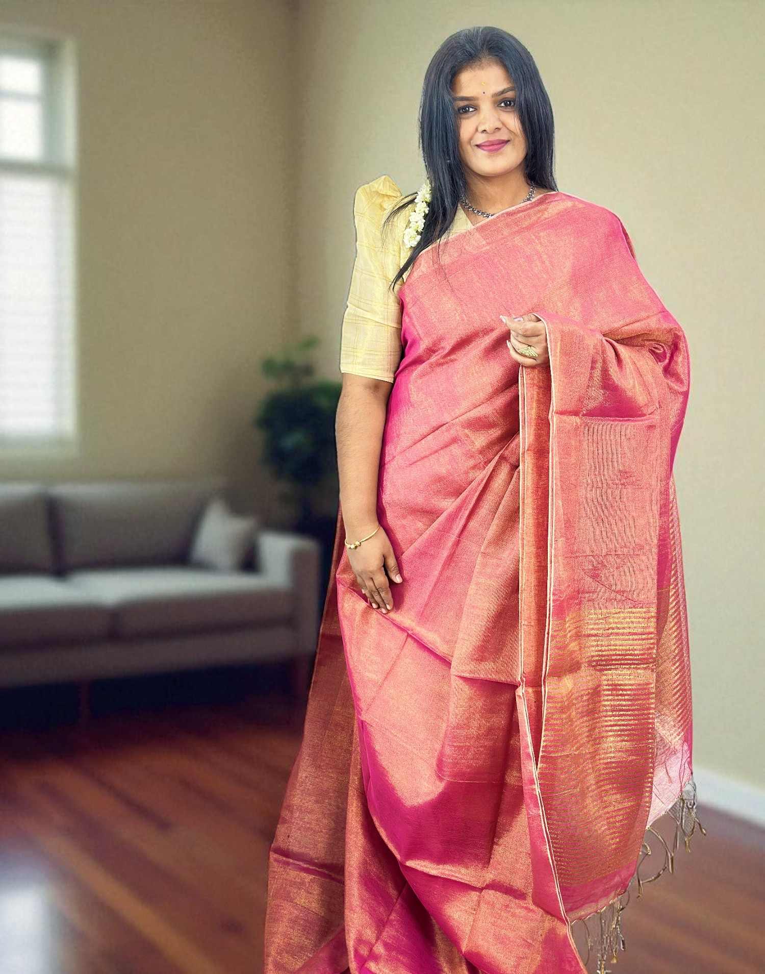 170825S (E6351) LINAN TISSUE SAREE - Pink