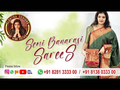 171225S (E6514) SEMI BANARASI SAREE - Cherry Red n Green 1