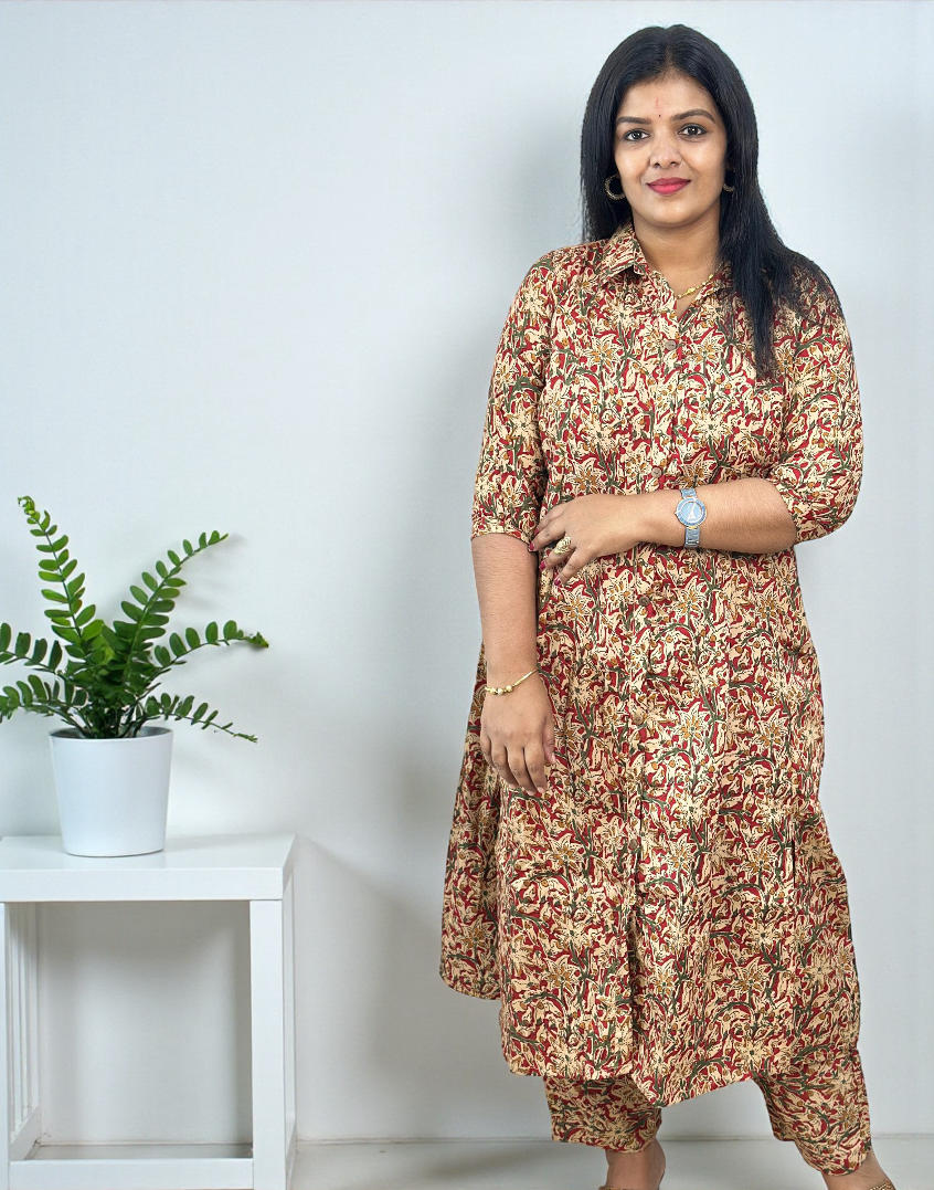 211125CS (E6632) A-LINE CO-ORD SET - Reddish Maroon