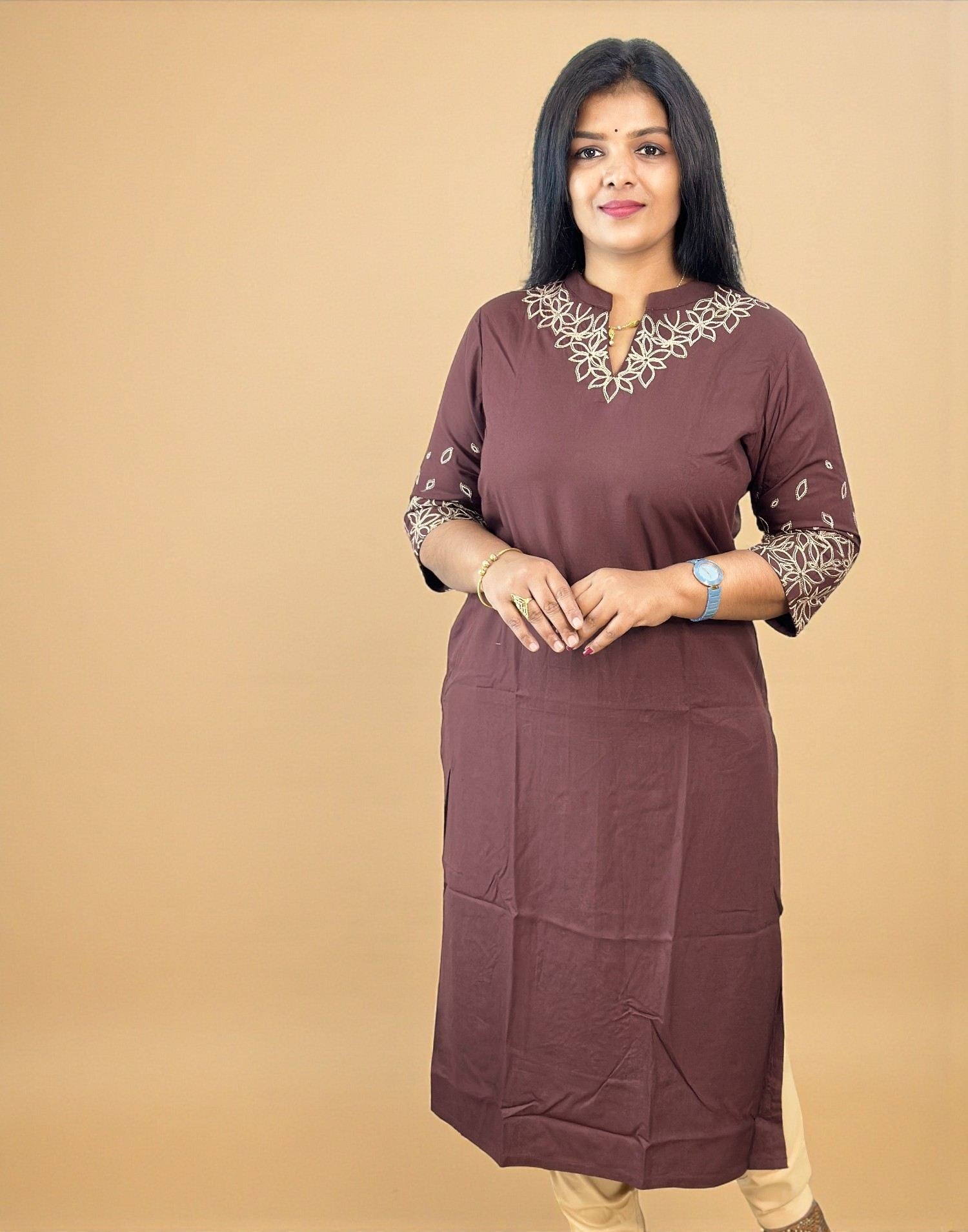 211125EK (E6630) DESIGNER EMBROIDERY KURTI - Coffee Brown
