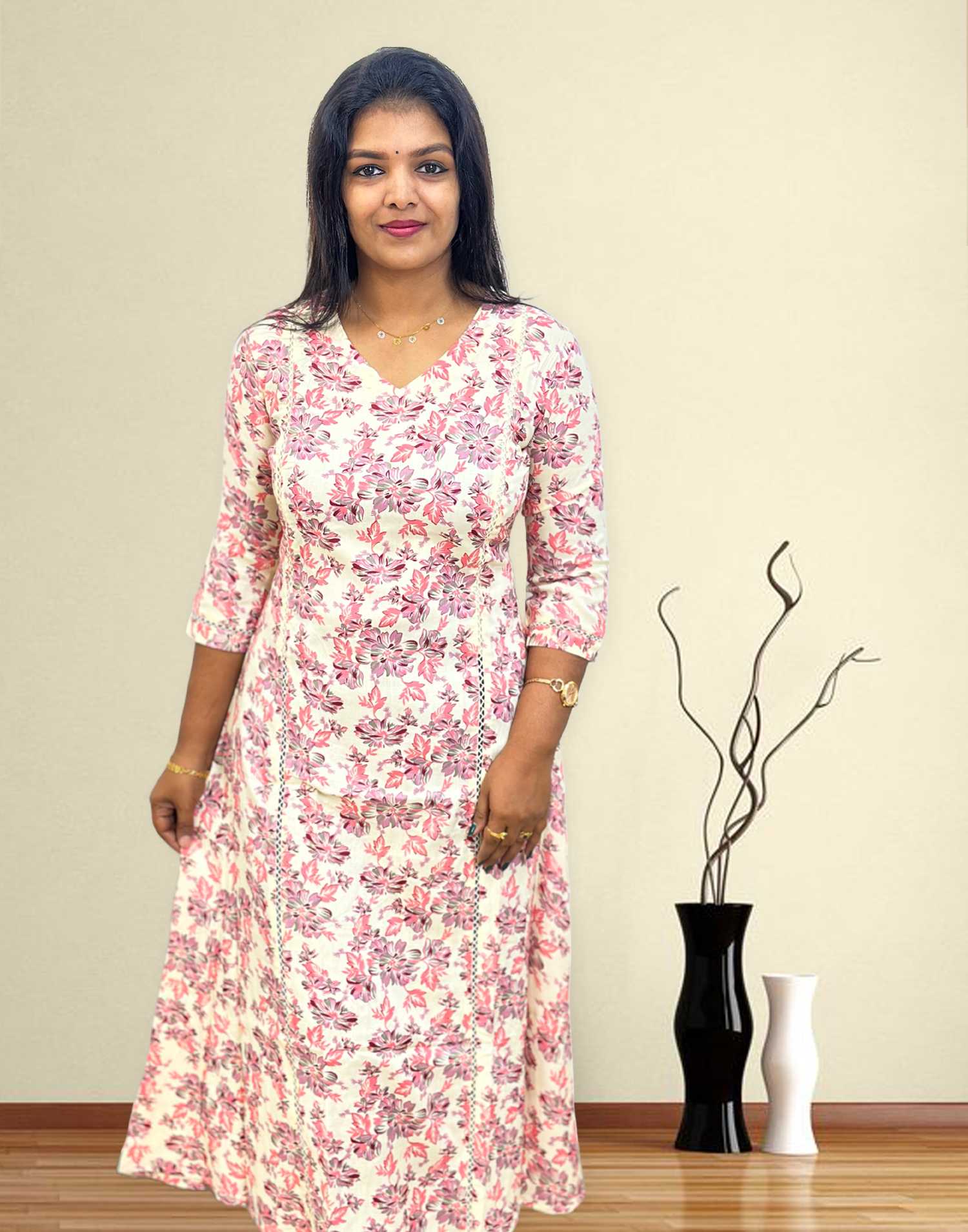 230324 (E3226) COTTON A-LINE KURTI - Peaches Pink