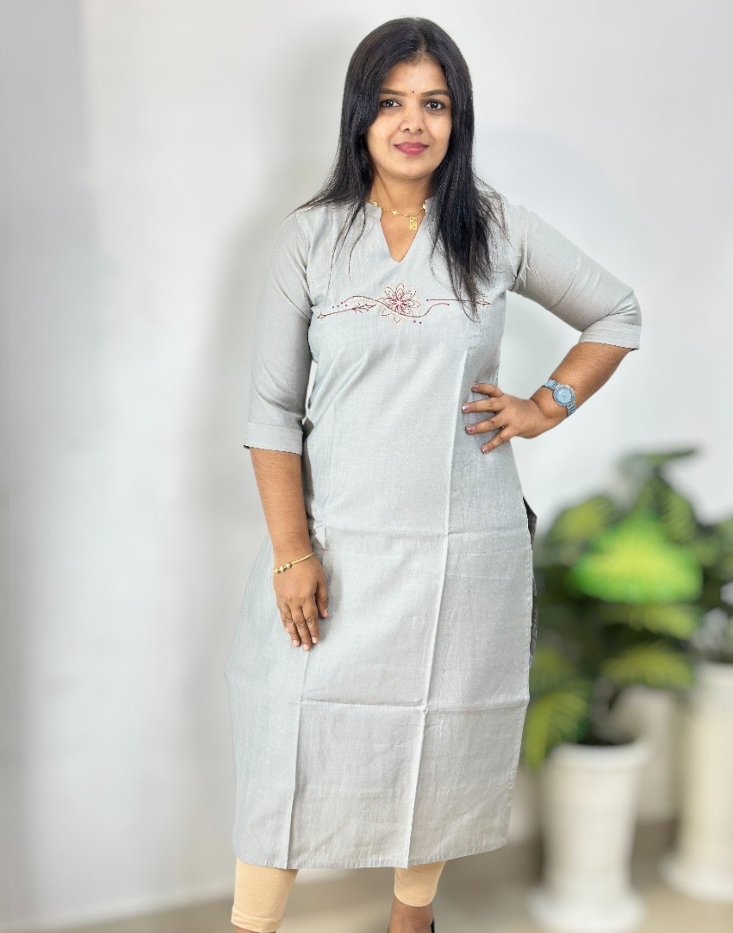 290825EK (E6528) EMBROIDERY KURTI - Silver Gray