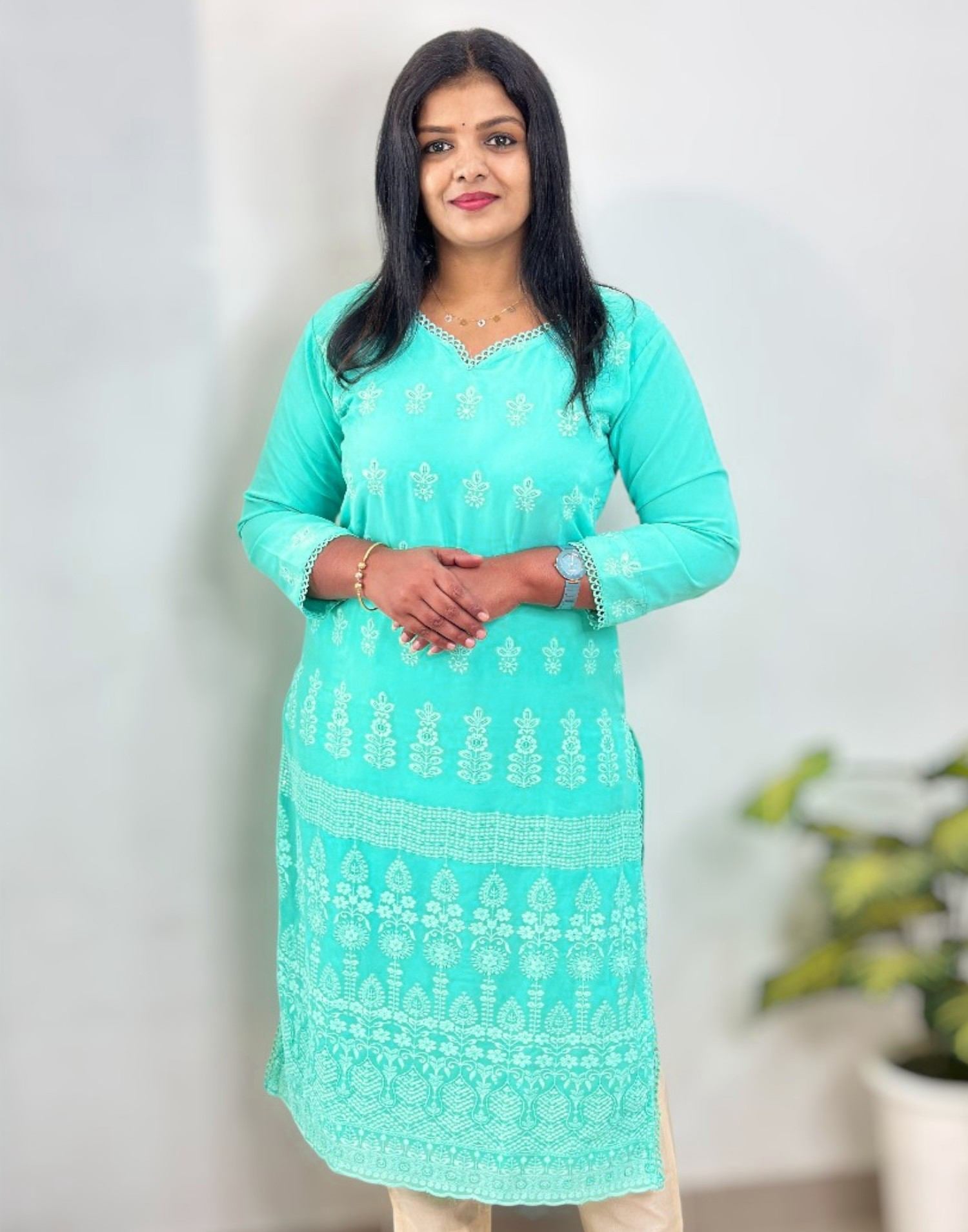 310825CK (E6425) GEORGETTE CHIKANKARI KURTI - Sage Green