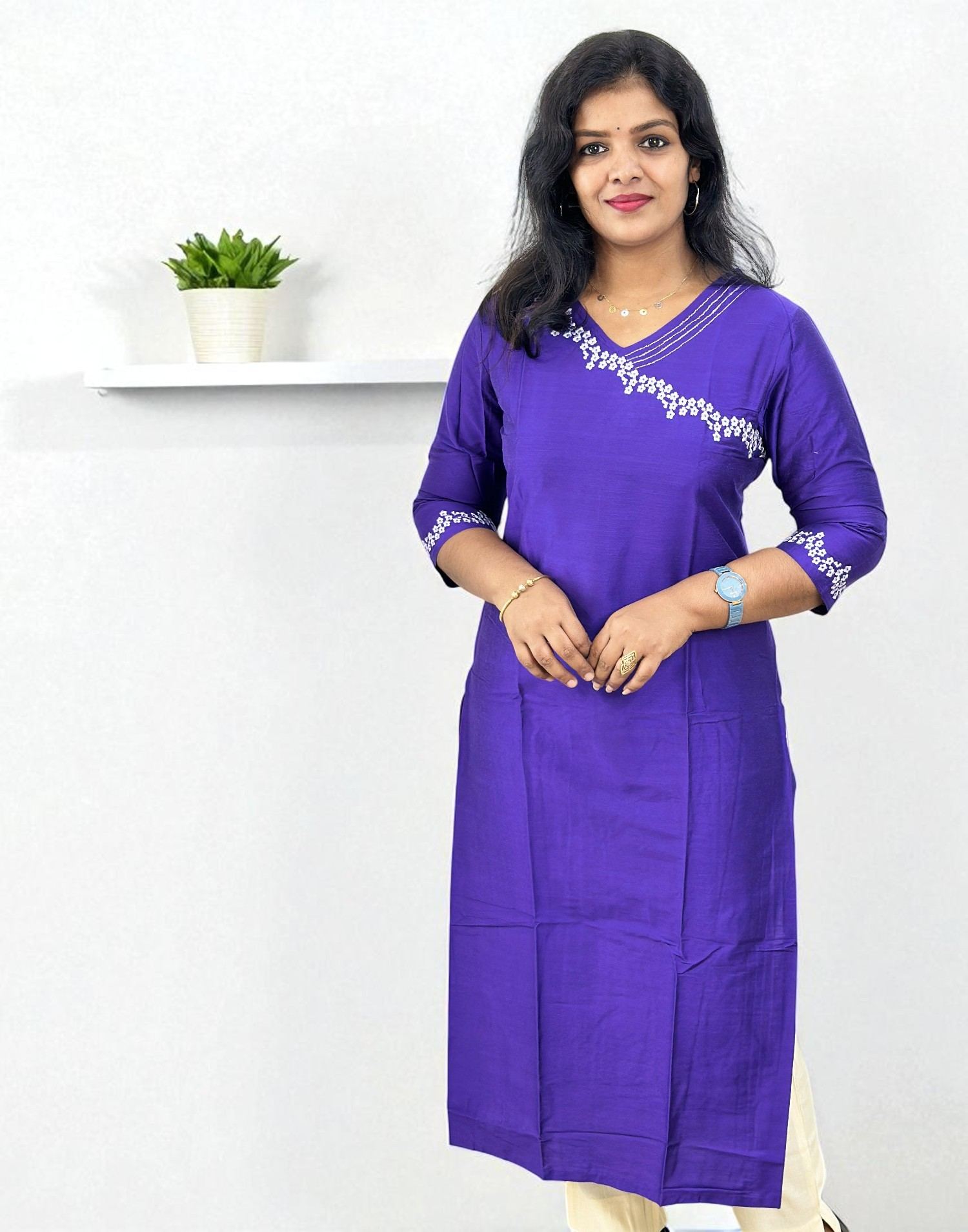 310825EK (E6403) DESIGNER EMBROIDERY KURTI - Purple