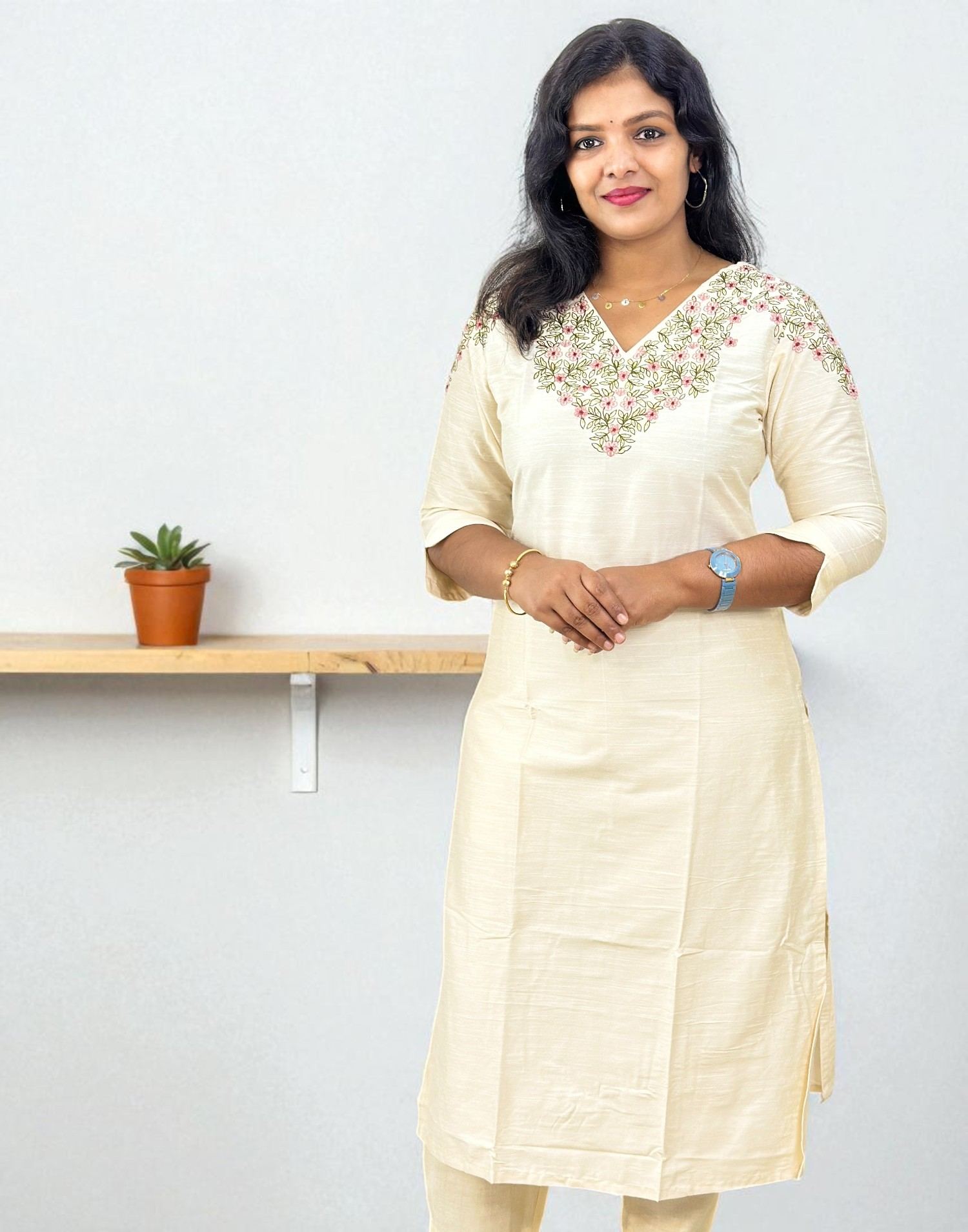 310825EK (E6450) DESIGNER EMBROIDERY KURTI - Cream